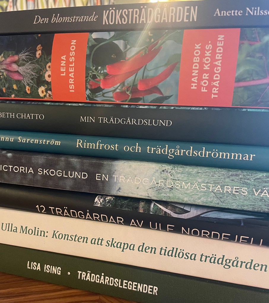 Köksträdgård: Anette Nilsson: Den blommande köksträdgården, Lena Israelsson: Handbok för köksträdgården.