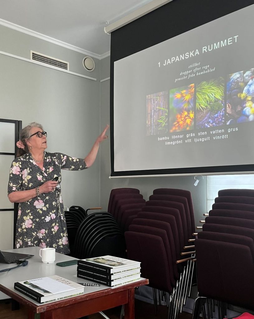 Vi fick följa med från den första planeringen, vidare till skapandet av rummen, inköp av växter som ibland blev lite mer eller annat än det som var tänkt. Slutligen också hur resultatet blev i de olika rummen och köket och vilka erfarenheter Linda gjort. Allt arbete blev också en bok som heter ”Trädgård med tolv rum och kök” (Votum förlag). Det var en härlig och personlig föreläsning.