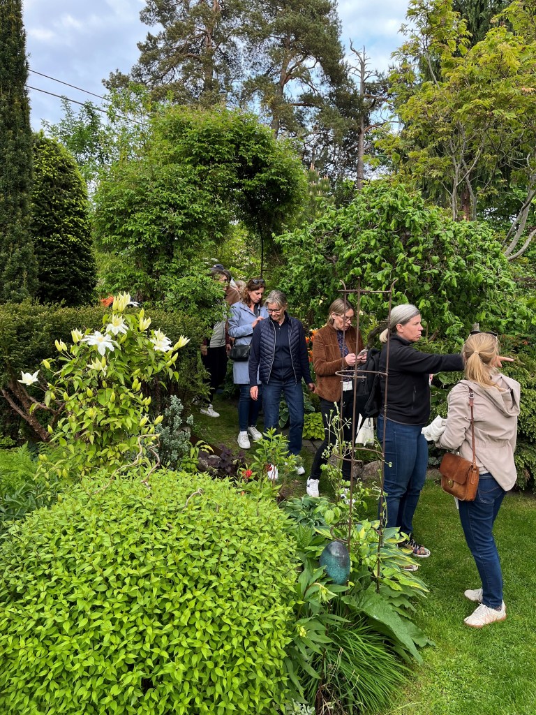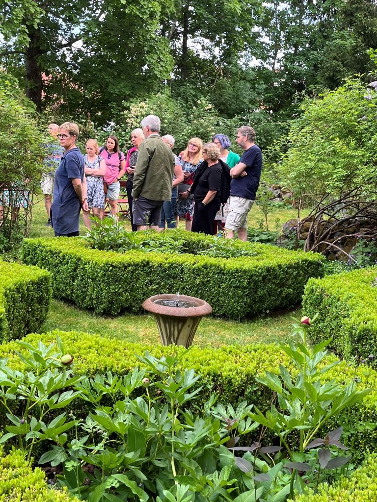 Vi fick guidning runt trädgårdens olika rum och blev mycket inspirerade av hur man göra och tänka kring sin trädgård. Vi avslutade med att fika tillsammans i den sköna junikvällen innan vi nöjda med utflykten styrde hemåt.