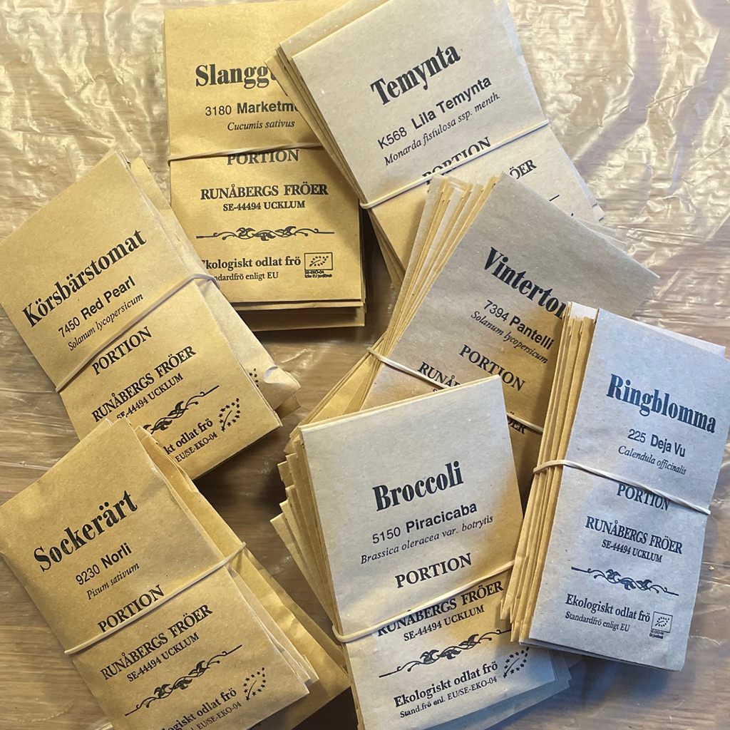 Till slut kom vi överens om att var och en skulle odla några olika sorters grönsaker och någon blomma blev det också. Sen delar vi dessa emellan oss i gruppen när det är dags för utplantering i växthus eller friland.