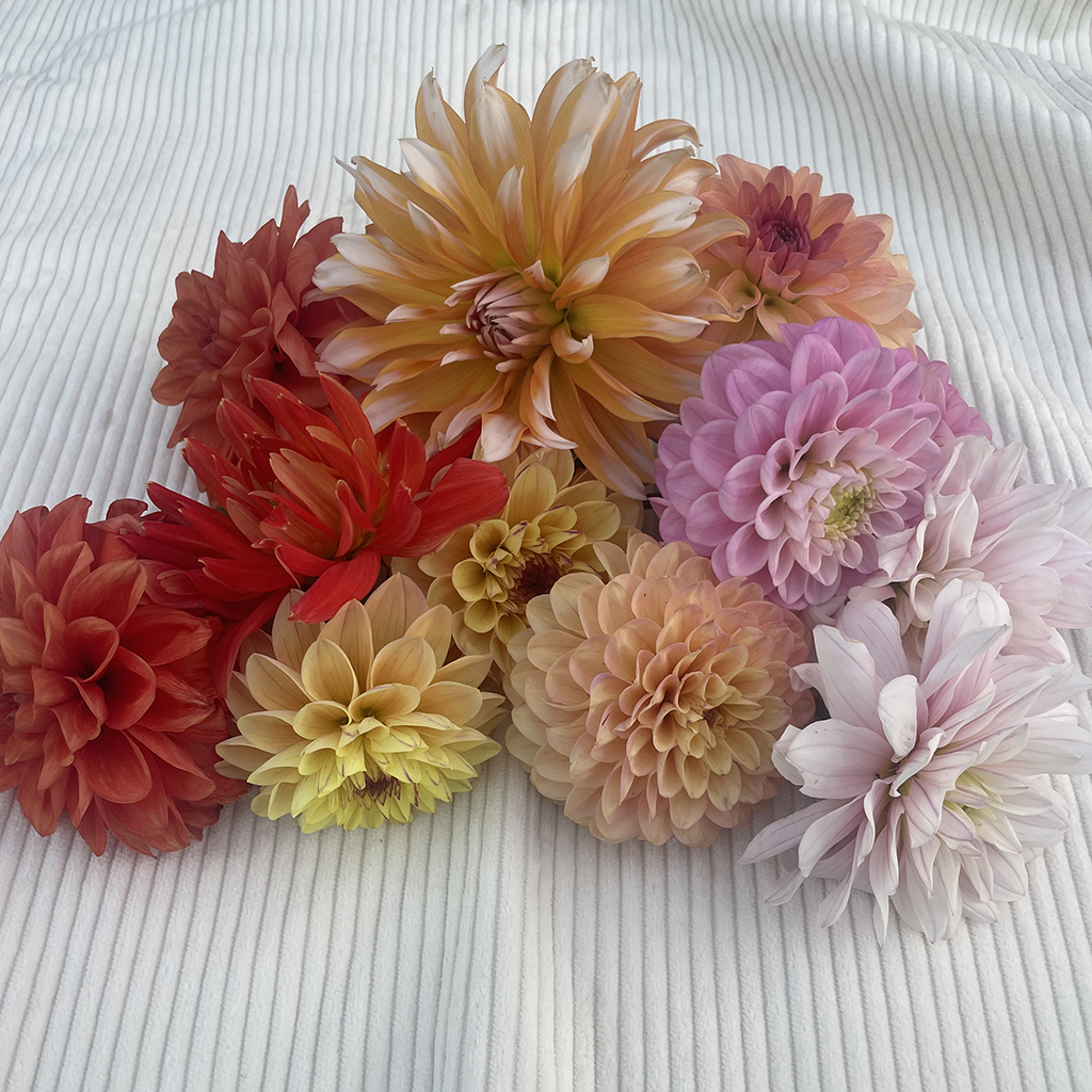 När skotten dykt upp och blivit kanske en decimeter, flyttades de, fortfarande i sina plastpåsar, till det ljusa matrummet och fick sparsamt med vatten tills de verkligen kommit i gång. I år började jag nog för tidigt (första veckan i mars otålig som jag är) med hänsyn till den kalla april som blev. För när dahliorna blev ohållbart stora blev jag tvungen att plantera om dem. Jag brukar plantera i stora stadiga svarta fyrkantiga plastkrukor på 18 eller 30 liter. Och det blev ett fasligt kånkande in och ut innan värmen kom och jag vågade låta dem stå ute över natten. Krukorna gör också så att jag kan placera om dem efter säsong, höjd och färg, skapa nya kompositioner när andan faller på.